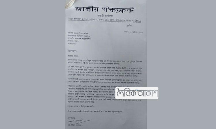 অাকাশ জাতীয় ডেস্ক: প্রধানমন্ত্রী ও আওয়ামী লীগ সভাপতি শেখ হাসিনা এবং দলটির সাধারণ সম্পাদক ওবায়দুল কাদেরকে রোববার চিঠি দিয়েছে গণফোরাম