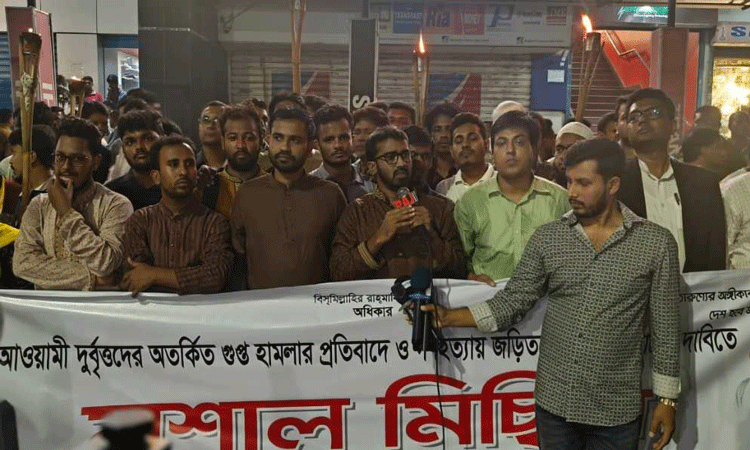 আকাশ জাতীয় ডেস্ক : আওয়ামী দুর্বৃত্তদের অতর্কিত গুপ্ত হামলার প্রতিবাদে ও গণহত্যায় জড়িতদের দ্রুত গ্রেফতারের দাবিতে-মশাল মিছিল করেছে বাংলাদেশ যুব