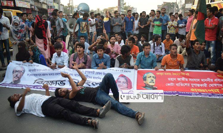 অাকাশ জাতীয় ডেস্ক: ‘প্রজ্ঞাপন জারি করো, নইলে বুকে গুলি করো’ স্লোগানে মুখরিত করে রংপুর-ঢাকা মহাসড়ক অবরোধ করেছে সাধারণ শিক্ষার্থীরা। সোমবার