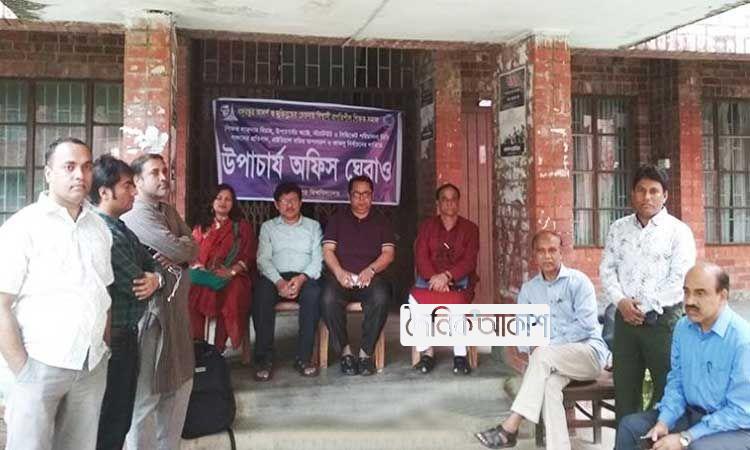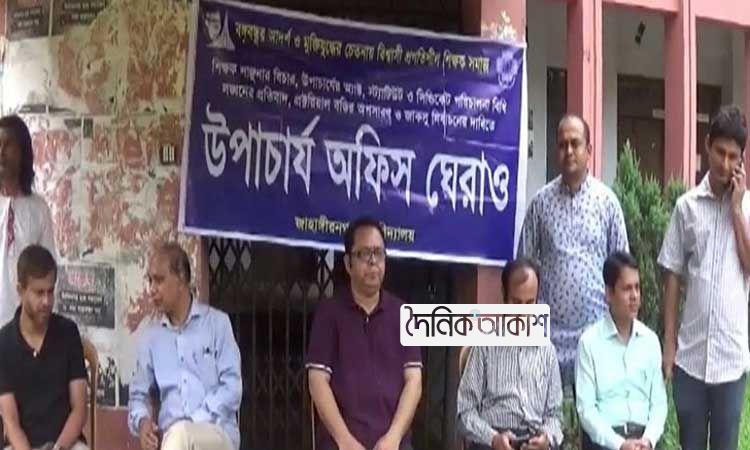 অাকাশ জাতীয় ডেস্ক: শিক্ষক লাঞ্ছনার বিচারসহ বেশ কয়েকটি দাবিতে জাহাঙ্গীরনগর বিশ্ববিদ্যালয় উপাচার্যের কার্যালয় ঘেরাও করেছেন বিশ্ববিদ্যালয়ের আওয়ামীপন্থী শিক্ষকদের একাংশ। বৃহস্পতিবার
