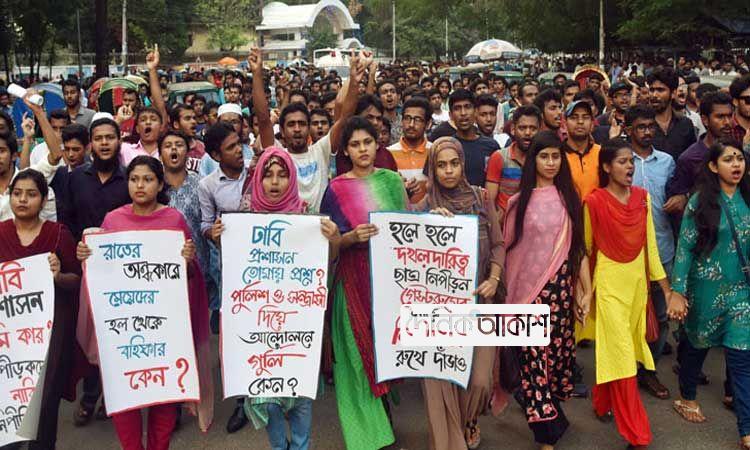 অাকাশ জাতীয় ডেস্ক: গভীর রাতে ঢাকা বিশ্ববিদ্যালয়ের কবি সুফিয়া কামাল হল থেকে প্রশাসন কর্তৃক নজিরবিহীনভাবে ছাত্রীদের হলছাড়া করার ঘটনায় দেশব্যাপী