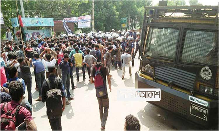 অাকাশ জাতীয় ডেস্ক: জাহাঙ্গীরনগর বিশ্ববিদ্যালয়ে কোটা সংস্কার আন্দোলনে পুলিশের সঙ্গে সংঘর্ষে বিশ্ববিদ্যালয়ের প্রক্টরসহ অর্ধশতাধিক শিক্ষার্থী আহত হয়েছেন। সোমবার সকাল পৌনে
