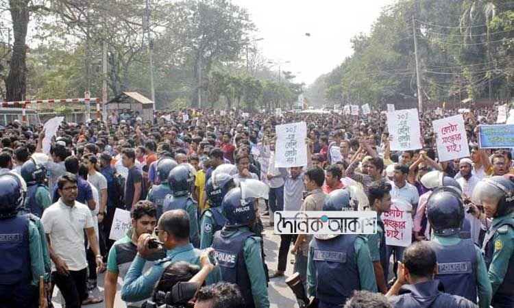 কোটা সংস্কারের দাবিতে শাহবাগে সড়ক অবরোধ করে বিক্ষোভ