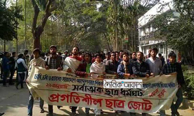 ঢাবি শিক্ষার্থীদের ওপর ছাত্রলীগের হামলার প্রতিবাদে জাবিতে মিছিল