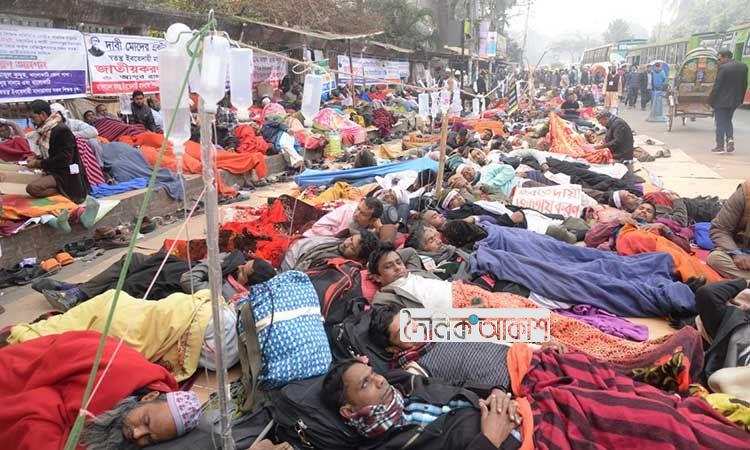 অাকাশ জাতীয় ডেস্ক: জাতীয়করণের দাবিতে কনকনে শীতে টানা ৮দিন আমরণ অনশেনর পর দাবি পূরণের চেষ্টার আশ্বাস পেয়ে অনশন ভাঙলেন শিক্ষকরা।