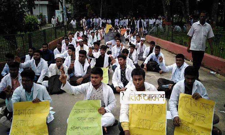 নিরাপদ আবাসন দাবিতে বরিশাল মেডিকেল কলেজে বিক্ষোভ