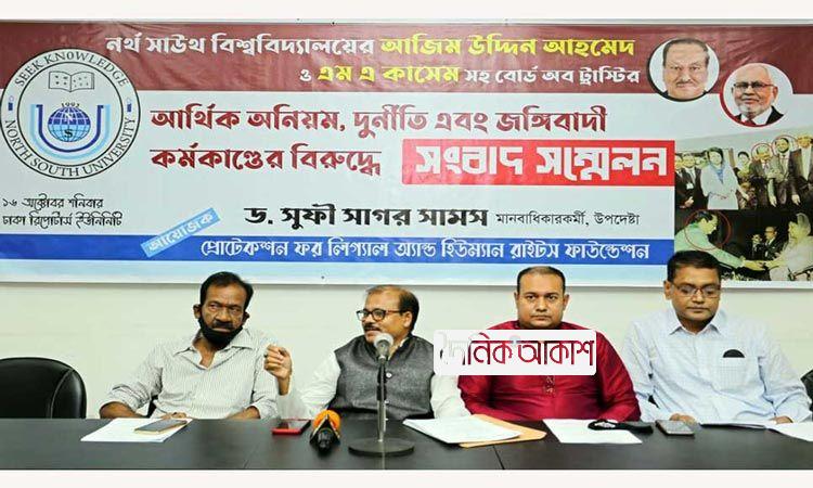 আকাশ জাতীয় ডেস্ক: লাগামহীন দুর্নীতি, অনিয়ম, স্বেচ্ছাচারিতা, সিন্ডিকেট ও জঙ্গিবাদে পর্যুদস্ত দেশের অন্যতম শীর্ষ বেসরকারি শিক্ষা প্রতিষ্ঠান নর্থ-সাউথ বিশ্ববিদ্যালয়। এ