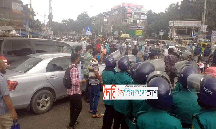 ৪ দফা দাবিতে নীলক্ষেত মোড়ে অবস্থান ৭ কলেজ শিক্ষার্থীদের