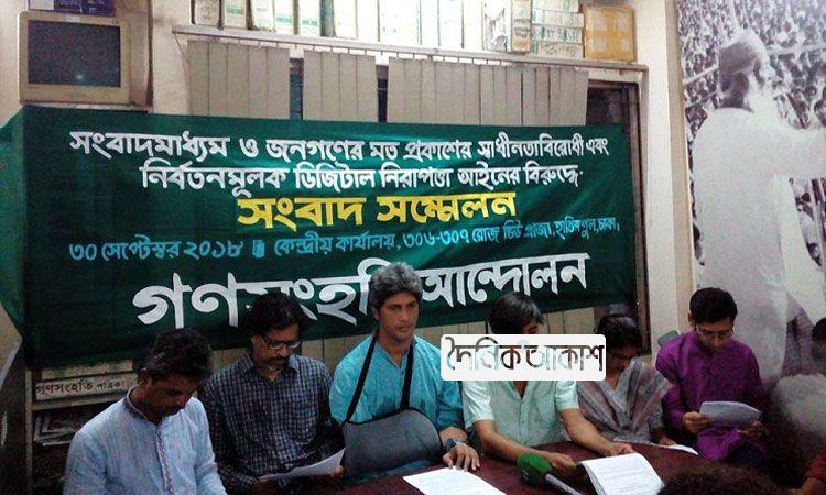 অাকাশ জাতীয় ডেস্ক: সরকারের পায়ের তলায় মাটি আর তাদের পক্ষে জনগণের সমর্থন নেই বলেই তারা ডিজিটাল নিরাপত্তা আইনটি সংসদে পাস