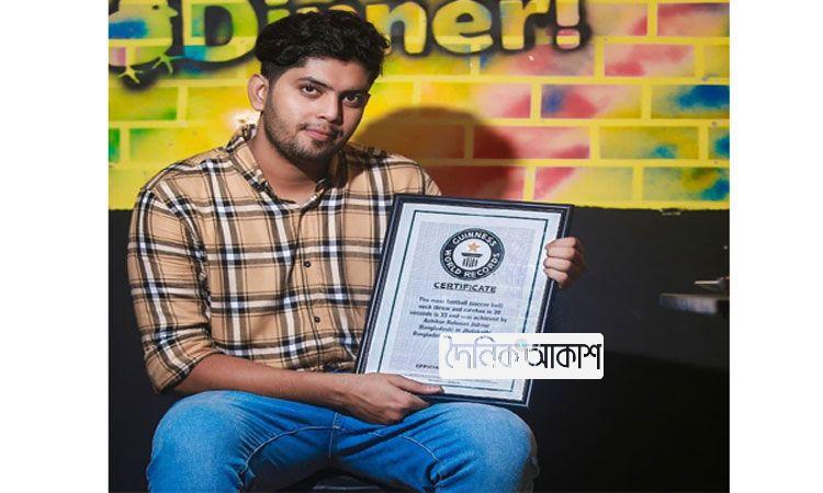 আকাশ জাতীয় ডেস্ক: ‘নিক থ্রো অ্যান্ড ক্যাচ’ ক্যাটাগরিতে ৩০ সেকেন্ডে ৩৩ বার অর্থাৎ কাঁধ দিয়ে ফুটবলকে শূন্যে ভাসিয়ে আবার কাঁধের