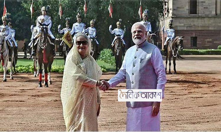 আকাশ জাতীয় ডেস্ক: নয়াদিল্লির রাষ্ট্রপতি ভবনে বাংলাদেশের প্রধানমন্ত্রী শেখ হাসিনাকে উষ্ণ অভ্যর্থনা জানিয়েছেন ভারতের প্রধানমন্ত্রী নরেন্দ্র মোদি। প্রধানমন্ত্রী শেখ হাসিনার