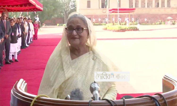 দিল্লির রাষ্ট্রপতি ভবনে শেখ হাসিনাকে উষ্ণ অভ্যর্থনা