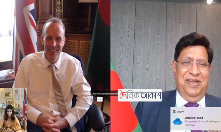আকাশ জাতীয় ডেস্ক: ইউরোপে সফররত পররাষ্ট্রমন্ত্রী ড. এ কে আব্দুল মোমেন সোমবার ব্রিটিশ পররাষ্ট্রমন্ত্রী ডোমিনিক রারের সঙ্গে দ্বিপাক্ষিক বৈঠকে কোভিড-১৯
