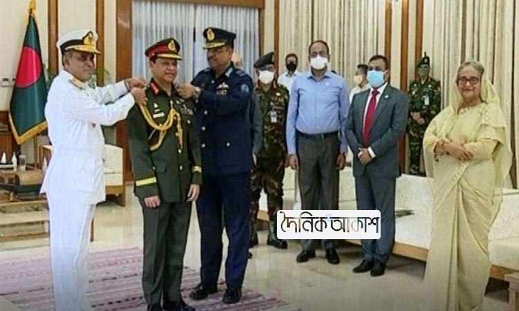 জেনারেল র্যাংক ব্যাজ পরানো হলো নবনিযুক্ত সেনাপ্রধানকে