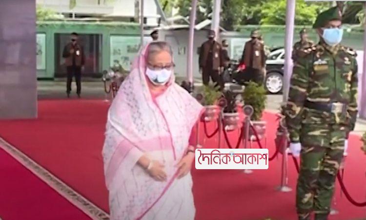 বঙ্গবন্ধুর প্রতিকৃতিতে প্রধানমন্ত্রীর শ্রদ্ধা