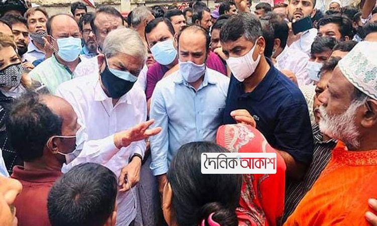 আগুনে ক্ষতিগ্রস্ত বস্তিবাসীদের দেখতে গেলেন মির্জা ফখরুল