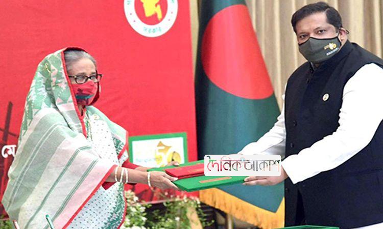 বাবার স্বাধীনতা পুরস্কার গ্রহণ করলেন ক্রীড়া প্রতিমন্ত্রী জাহিদ আহসান রাসেল