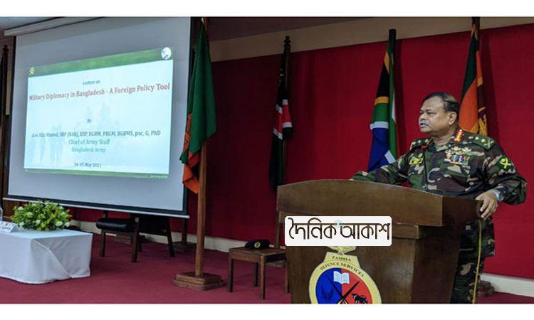 জাম্বিয়ার ন্যাশনাল ডিফেন্স কলেজে সামরিক কূটনীতির ওপরে সেনাপ্রধানের বক্তৃতা