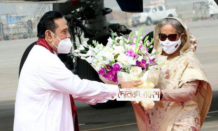 বিমানবন্দরে রাজাপাকসেকে স্বাগত জানালেন প্রধানমন্ত্রী