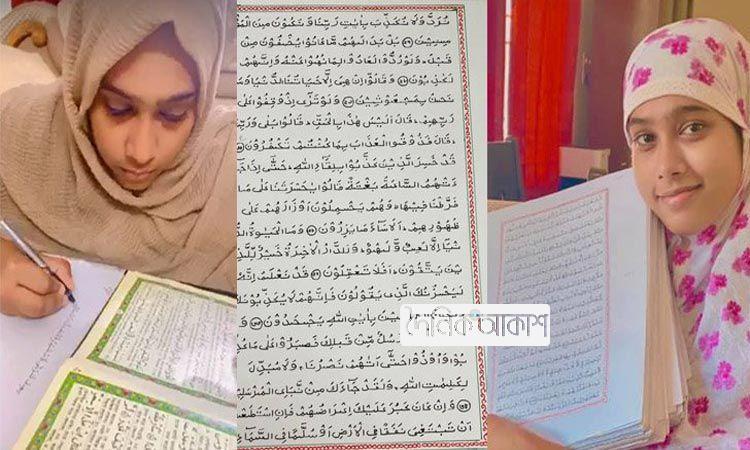 হাতে কোরআন লিখলেন সাবেক ছাত্রলীগ নেত্রী
