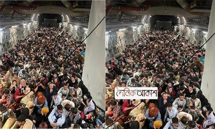 সামরিক বিমানে ঠাসাঠাসি করে দেশ ছাড়ছে আফগানরা, ছবি ভাইরাল