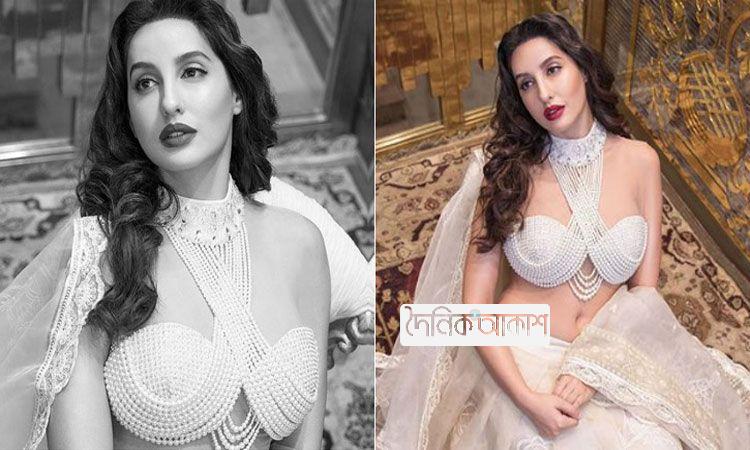 মুক্তার তৈরি কাঁচুলিতে ঝড় তুললেন নোরা