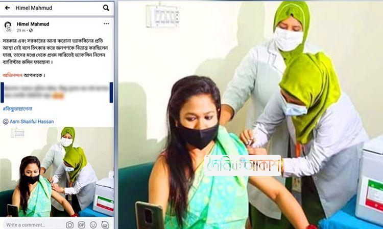 আকাশ জাতীয় ডেস্ক: বিএনপির সংসদ সদস্য রুমিন ফারহানা টিকা নিচ্ছেন এমন একটি ছবি সামাজিক যোগাযোগ মাধ্যমে ফেসবুকে ভাইরাল হয়েছে। মাস্কে