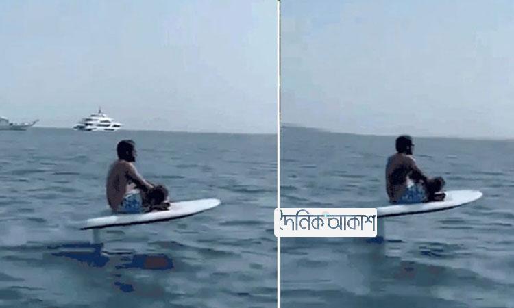 মাঝ সমুদ্রে সার্ফিং বোর্ডের উপর বসে যোগ ব্যায়াম! ভিডিও ভাইরাল