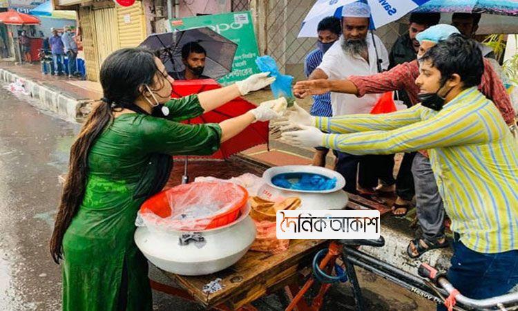 বৃষ্টিতে ভিজে নিজ হাতে তৈরি ইফতার বিতরণ করলেন ছাত্রলীগ নেত্রী