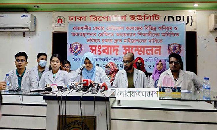 কেয়ার মেডিক্যাল বন্ধ করে মাইগ্রেশন চান শিক্ষার্থীরা